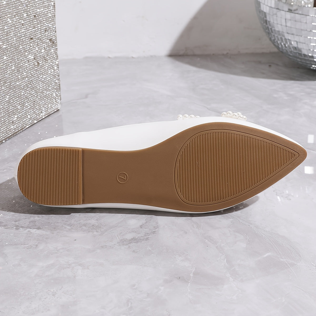 Elegant Pearl Bow Pointed-Toe Flats – White Bridal & Bridesmaid Wedding Shoes
