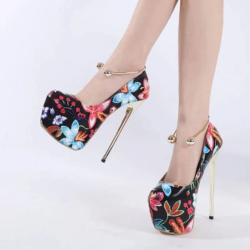Step into bold style with the Veronique Atelier 16CM Extreme High Heels, designed to make you shine at parties, nightclubs, or any special occasion. These stunning pumps feature a sleek round toe, a chic metal ankle strap, and a towering 16 cm stiletto heel with a 6 cm platform. Perfect for summer, these pumps combine edgy design with dramatic flair, making them ideal for pole dancing, nightlife, or any daring event.