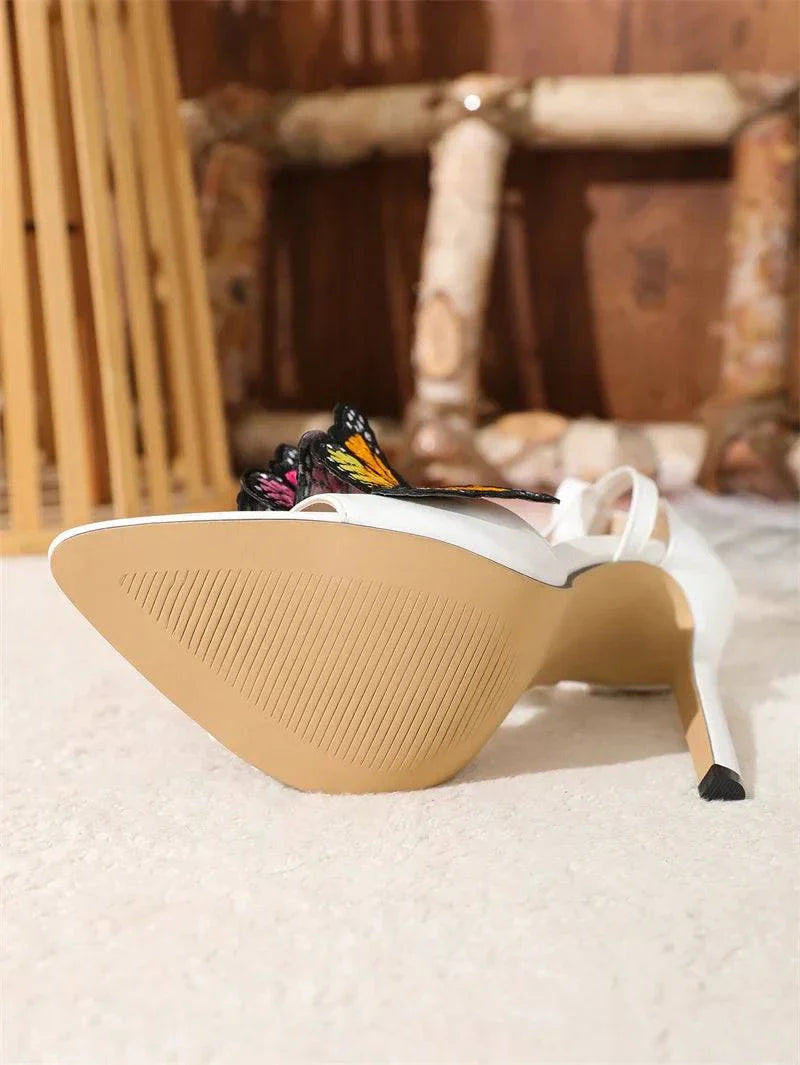 Embroidered Butterfly Ankle Strap Sandals - Pointed Toe High Heel Party Shoes for Women