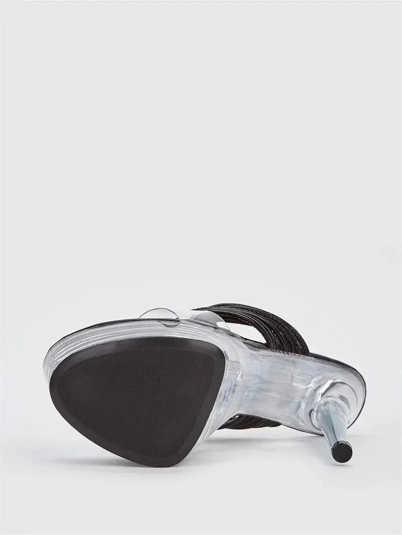 Sequined Transparent Platform Slippers - Open Toe High Heel Banquet Sandals for Women