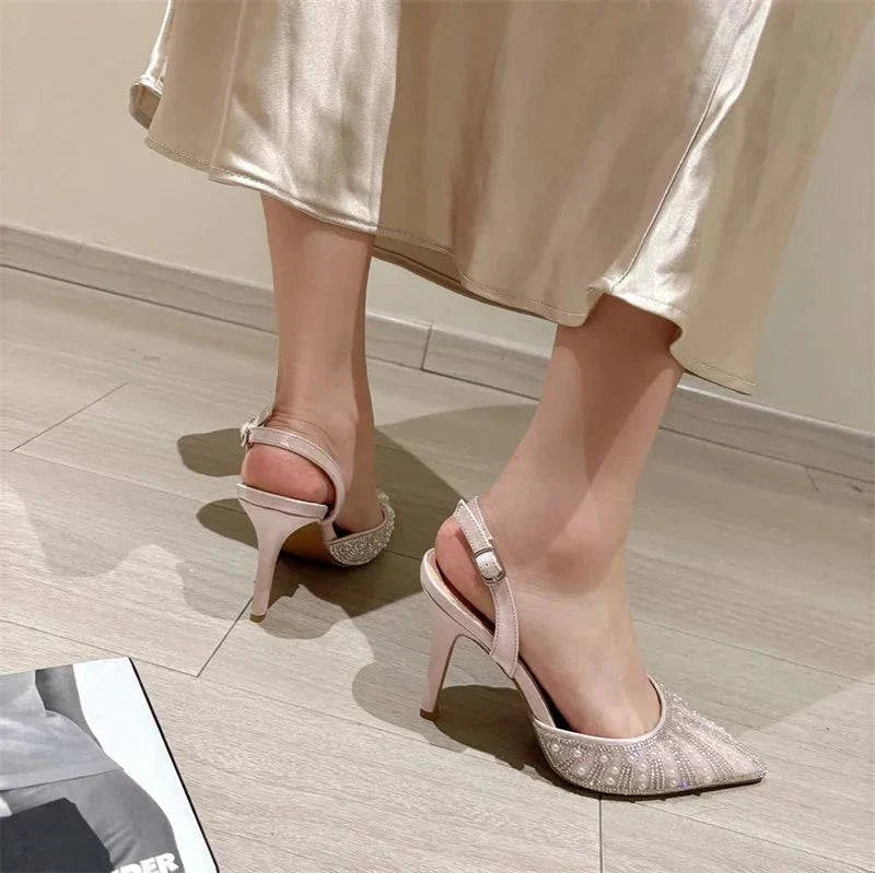 Step into elegance with the Veronique Atelier Crystal Pearl Pointed Toe Pumps, designed to make you shine at weddings, parties, or any special occasion. These stunning pumps feature a chic pointed toe, a dazzling crystal pearl embellishment, and a back buckle strap for a secure fit. With a super-high stiletto heel and a sleek silhouette, these pumps combine sophistication and comfort effortlessly.