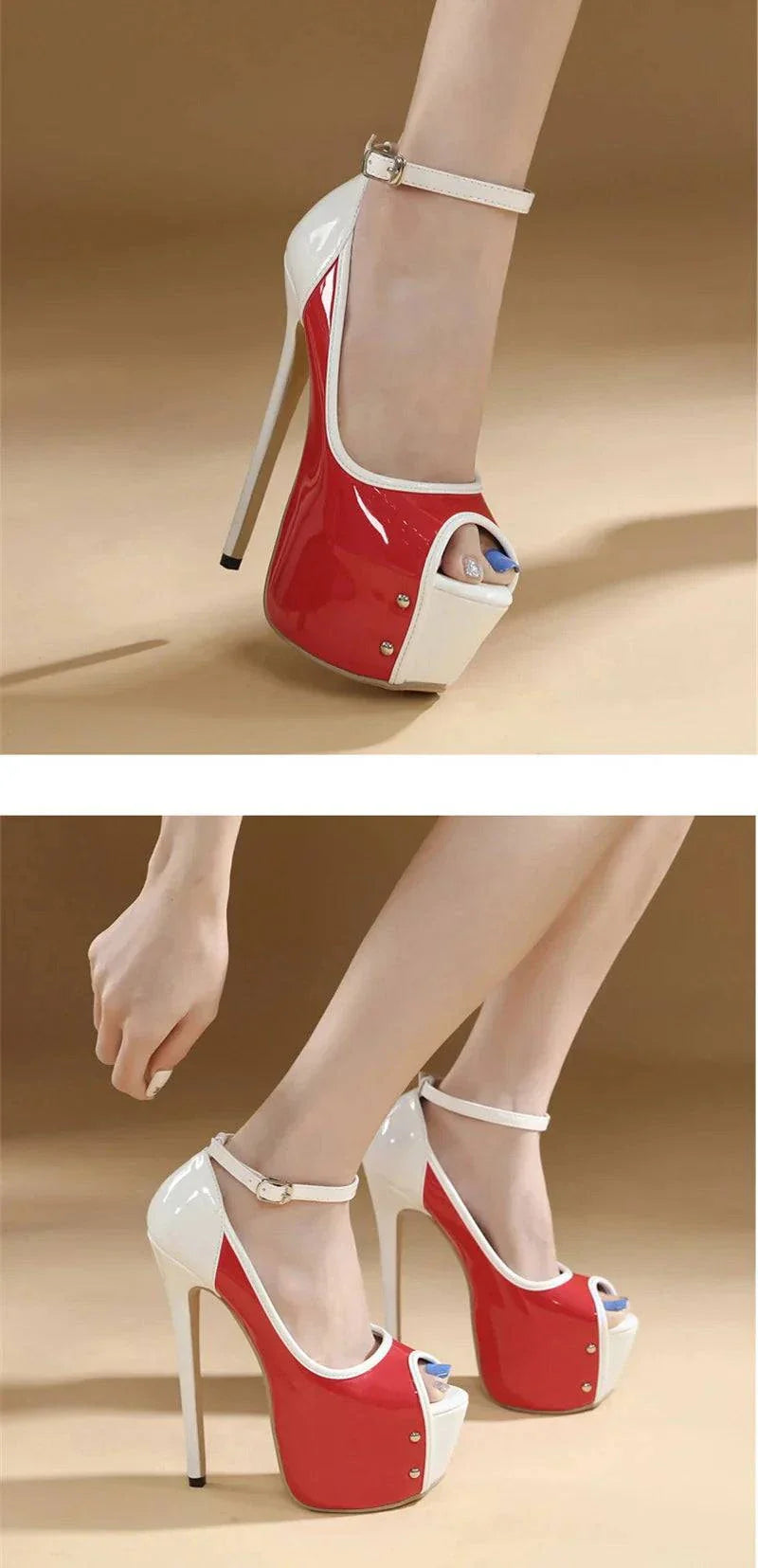 Step into bold style with the Veronique Atelier Red Peep-Toe Platform Pumps, designed to make you shine at parties, weddings, or any special occasion. These stunning pumps feature a chic peep-toe design, a buckle strap for a secure fit, and a towering 16 cm stiletto heel with a 5.5 cm platform. Perfect for spring and autumn, these pumps combine edgy design with dramatic flair, making them ideal for pole dancing, nightlife, or any daring event.