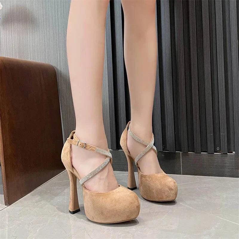 Women’s Rhinestone Ankle Strap Platform Wedges – Sexy Gladiator Sandals for Summer Parties and Events - Apricot / 41