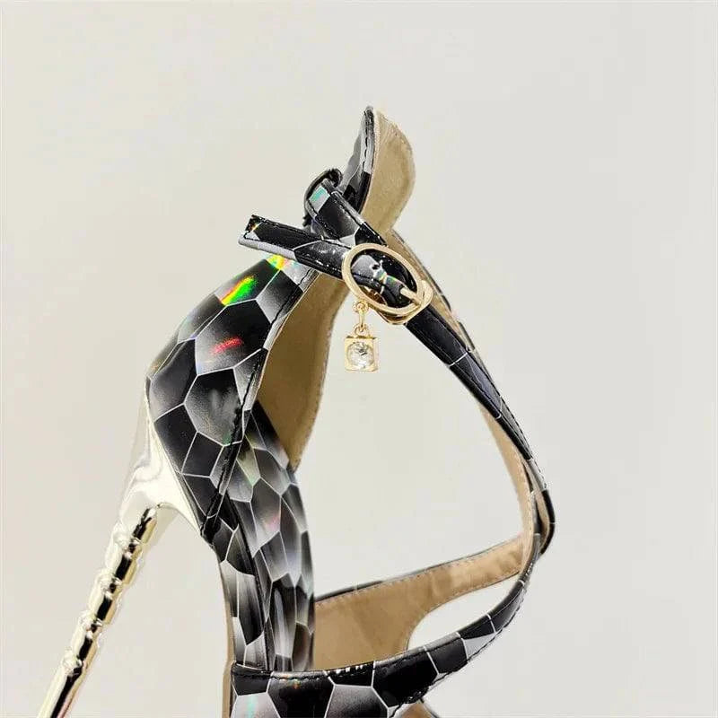 Women’s Snake Print Peep-Toe Platform Pumps – Sexy Buckle Strap High Heels for Summer Banquets and Parties - Black / 38