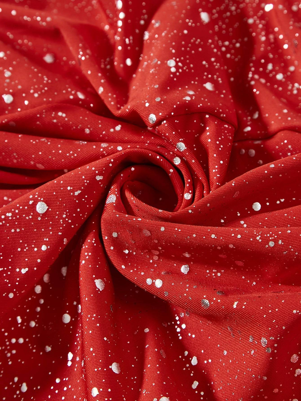 Elegant Red Starry Sky Maxi Dress – Long Sleeve Pleated Gown for Parties & Evening Events - 【Red】 / UK 6
