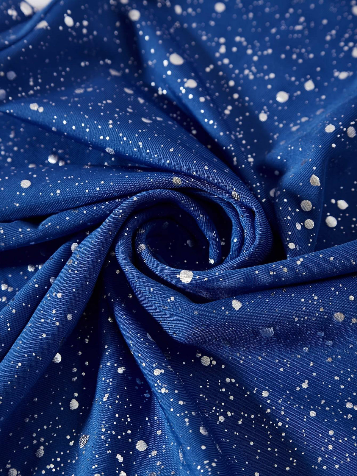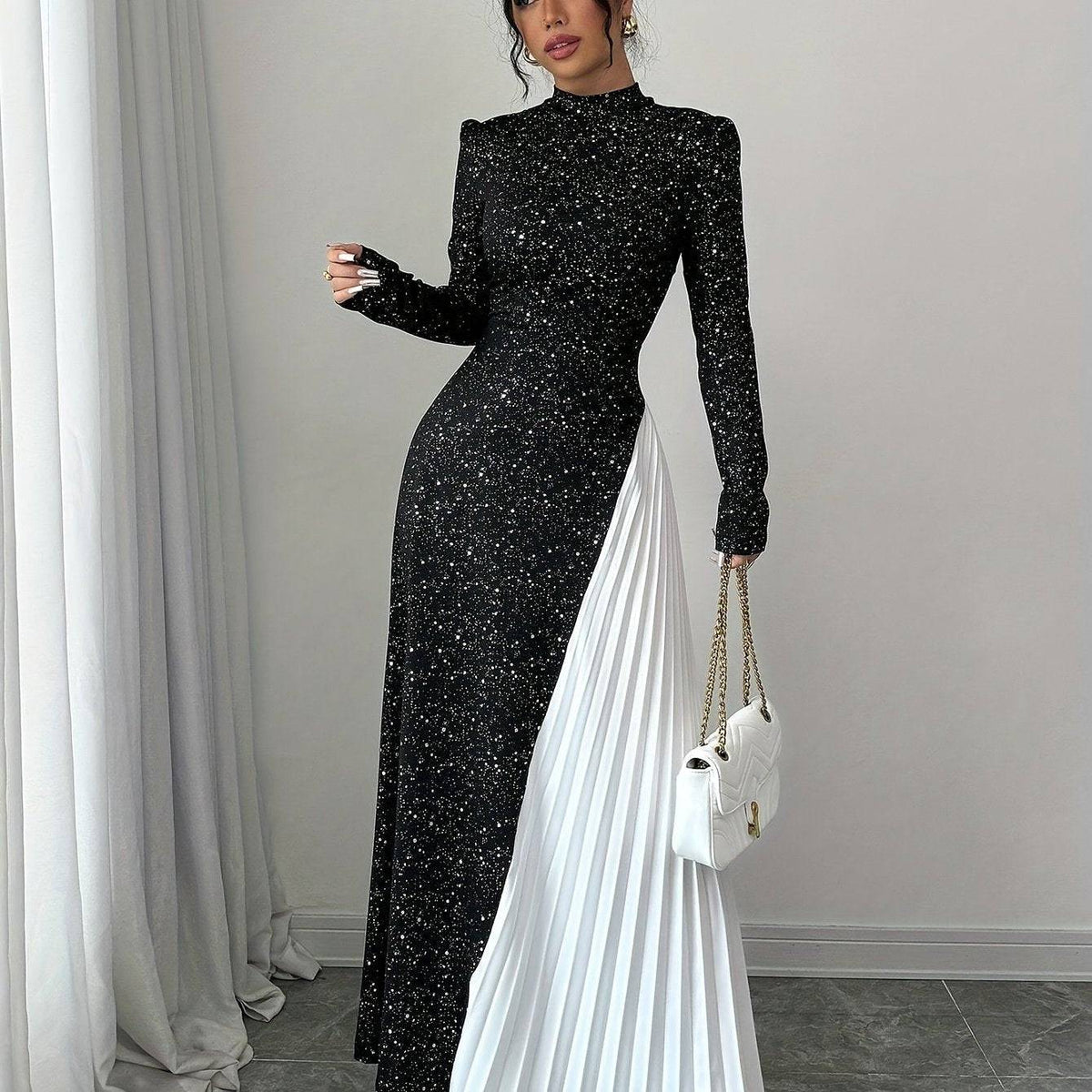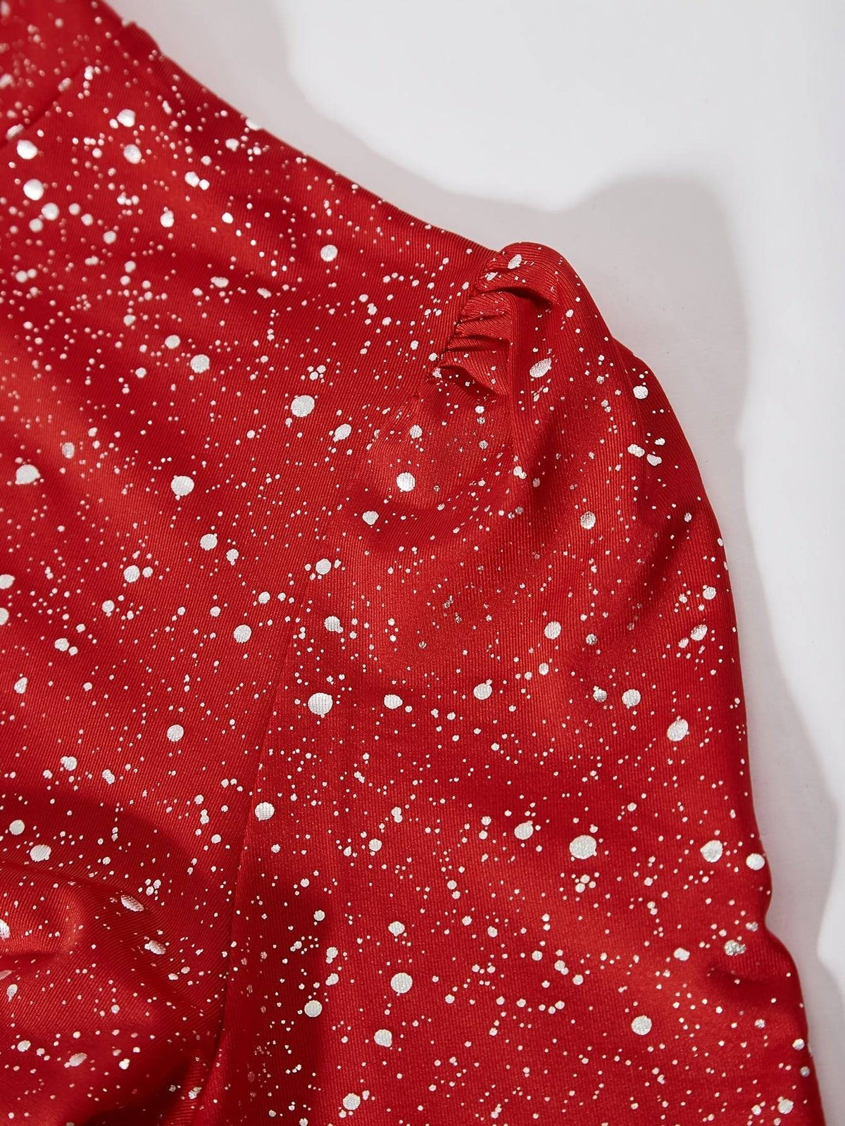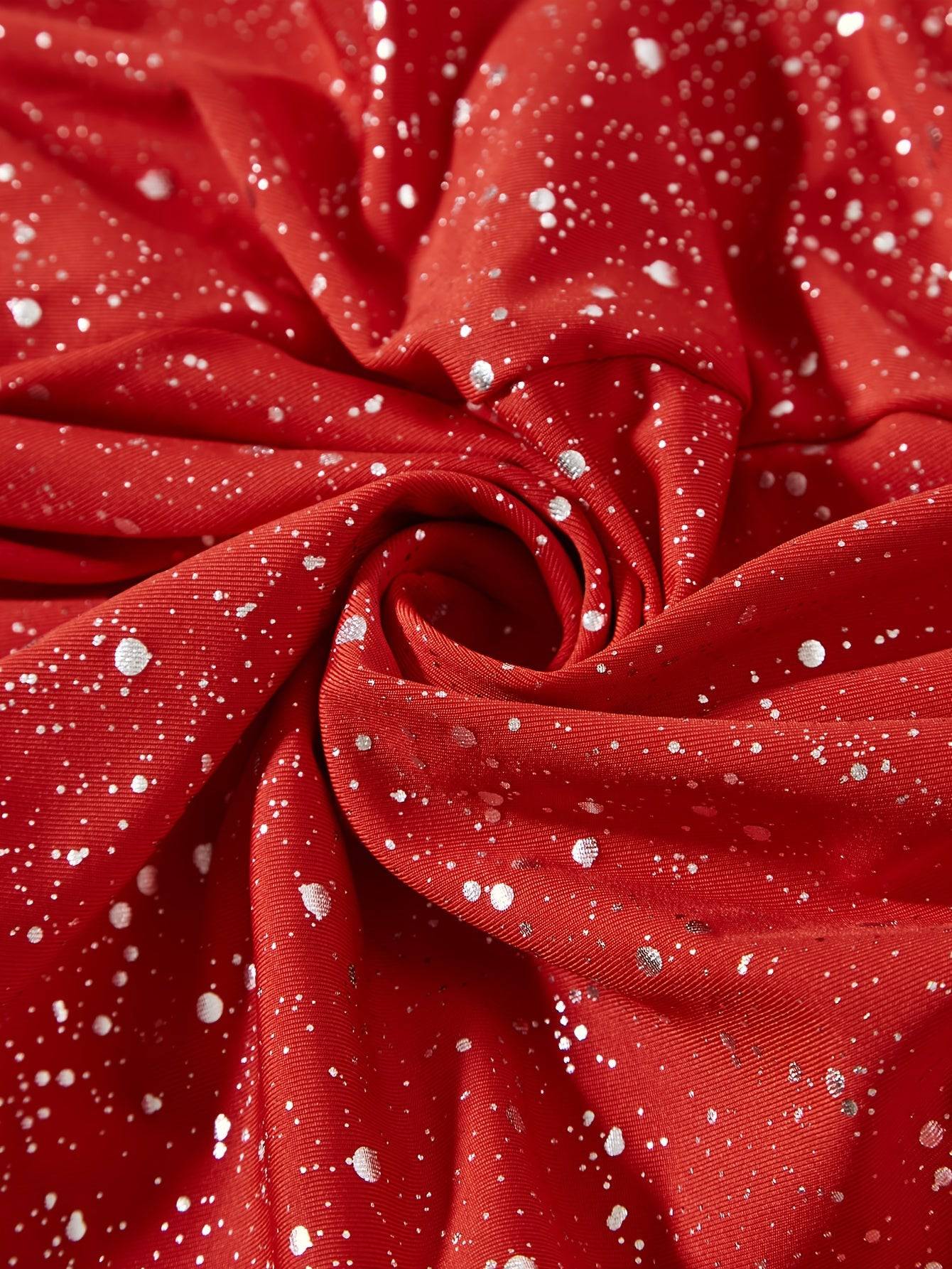 Elegant Red Starry Sky Maxi Dress – Long Sleeve Pleated Gown for Parties & Evening Events
