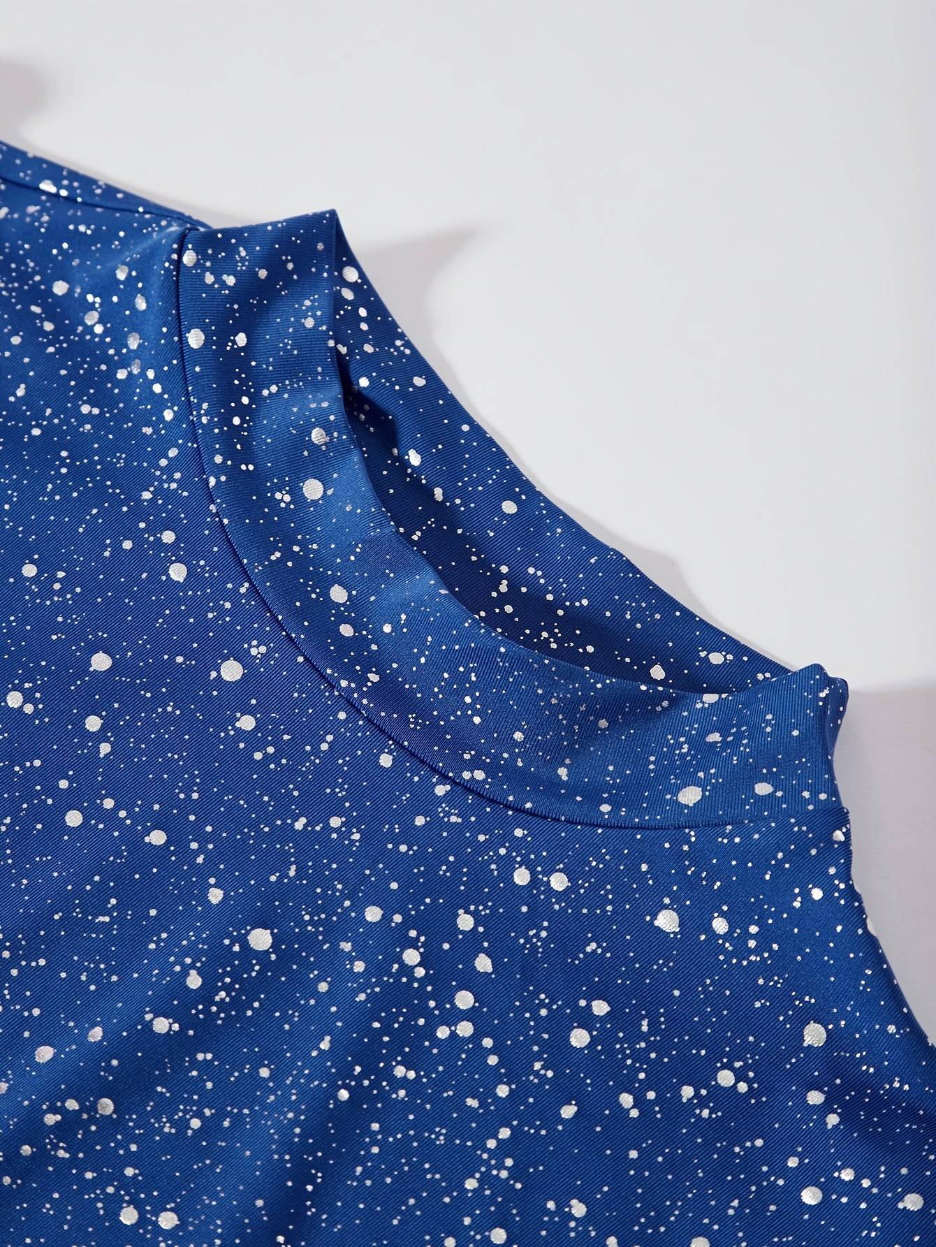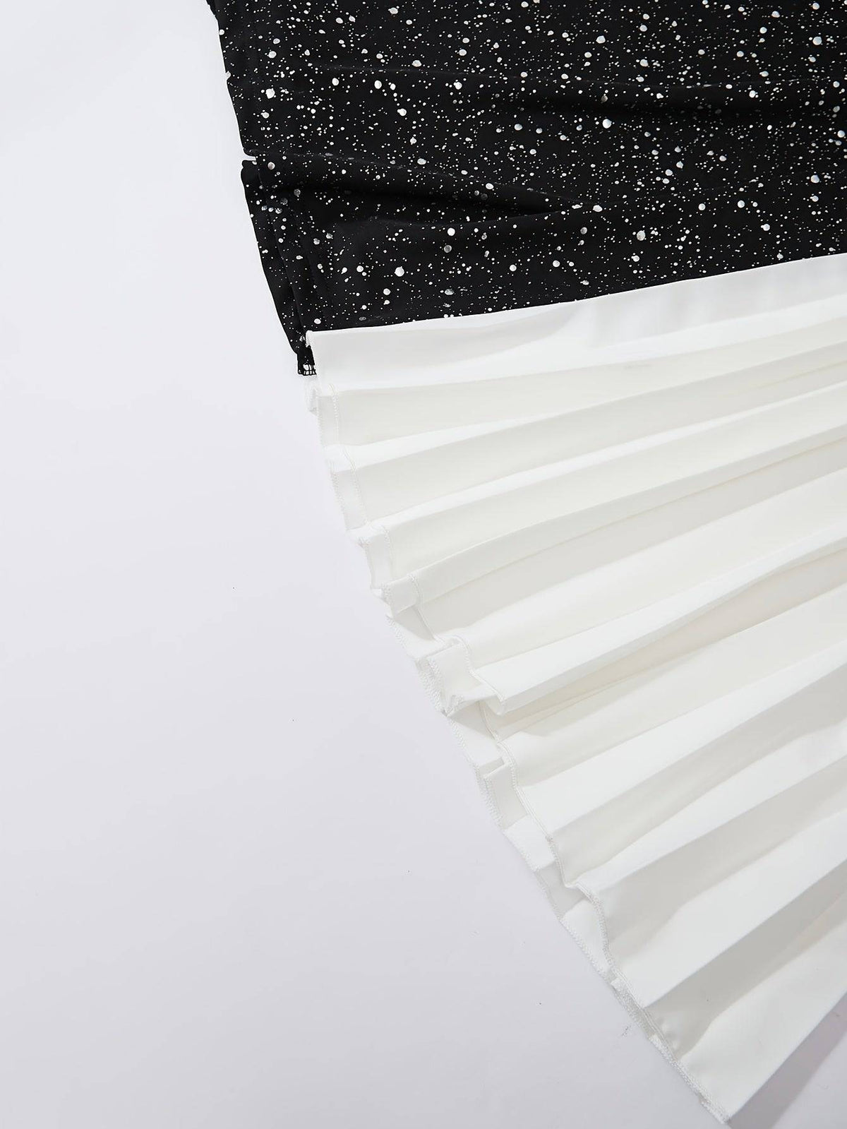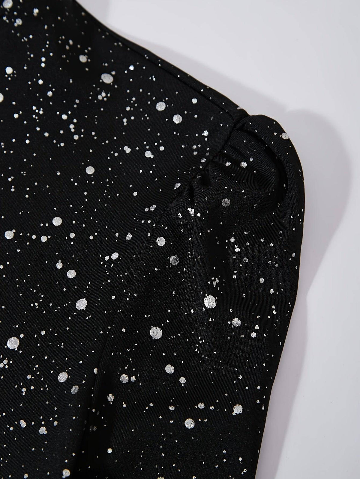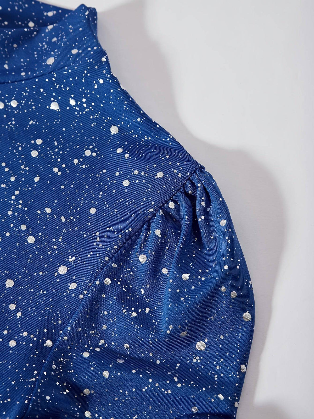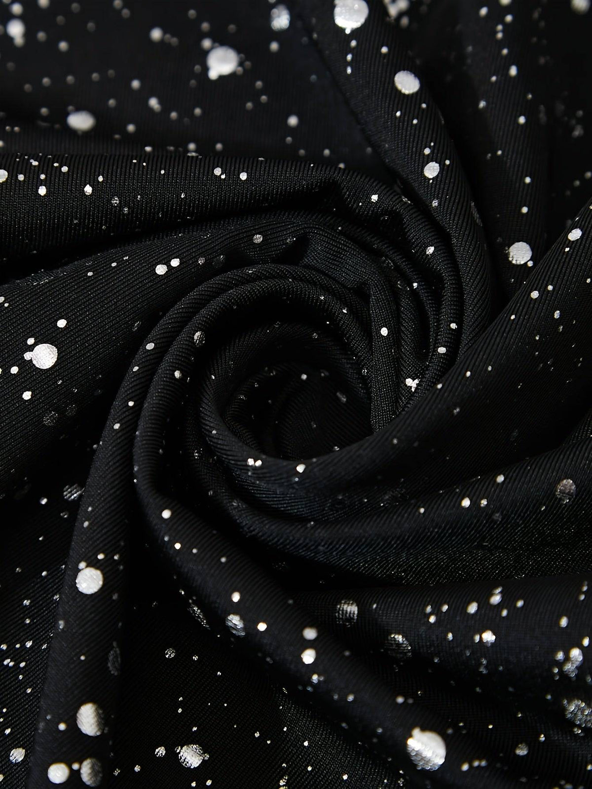 Elegant Red Starry Sky Maxi Dress – Long Sleeve Pleated Gown for Parties & Evening Events