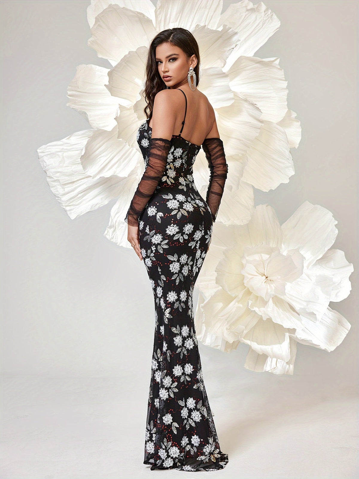 One-Shoulder Sequin Bodycon Dress – Elegant Long Sleeve Floor-Length Gown for Parties & Banquets