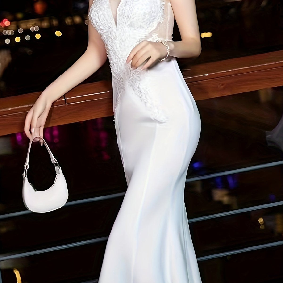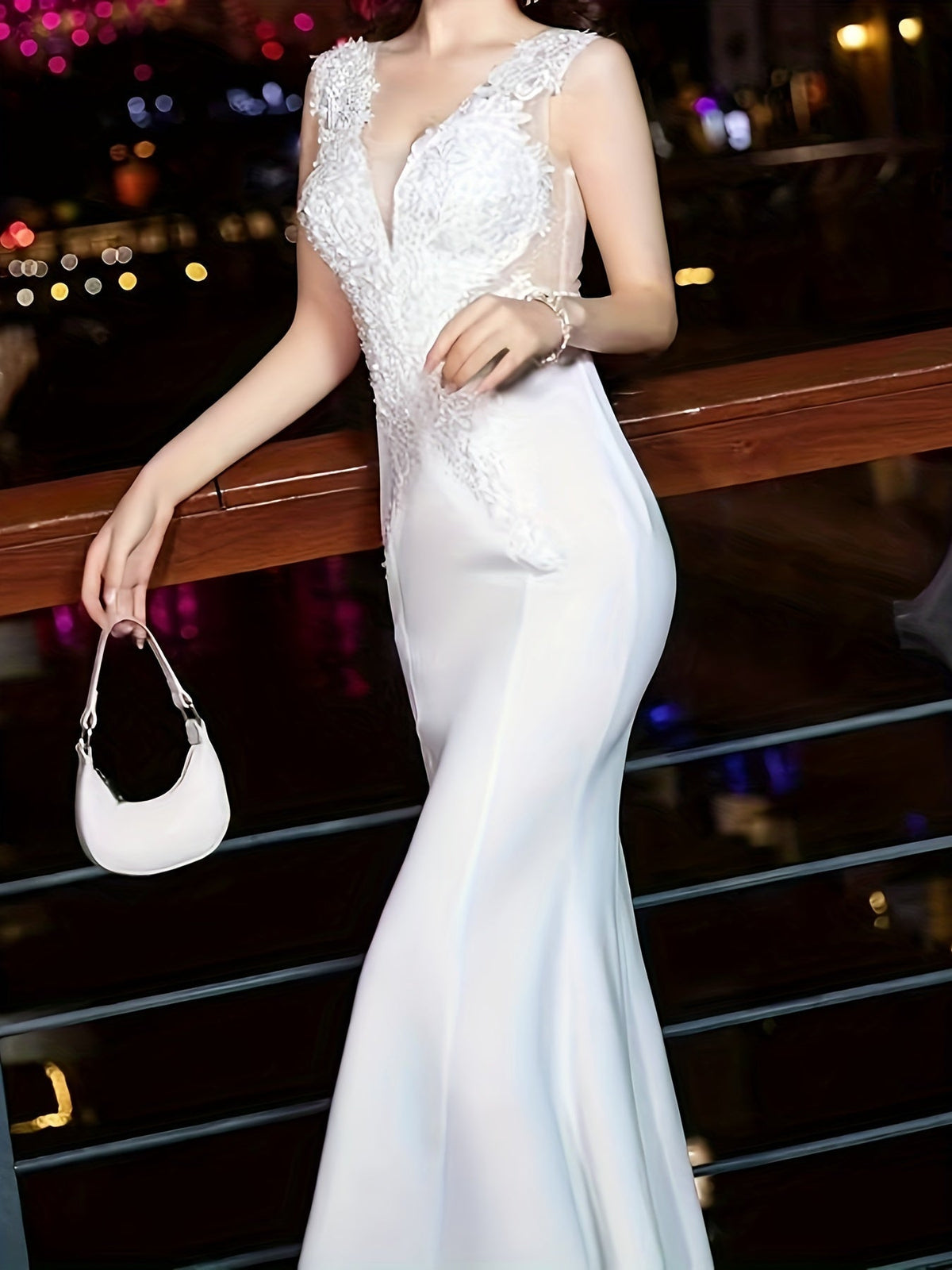 Sleeveless V-Neck Mesh Bodycon Dress – Elegant Evening Gown for Weddings & Parties