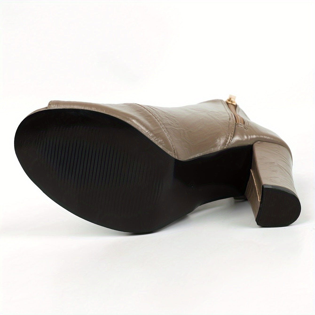 Chic Women's Peep Toe Ankle Booties – Stylish Block Heel Shoes with Side Zipper