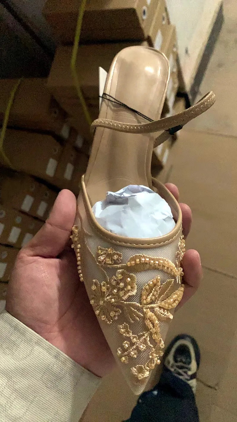 Mesh Embroidery Slingback Sandals - Pointed Toe High Heel Banquet Shoes for Women
